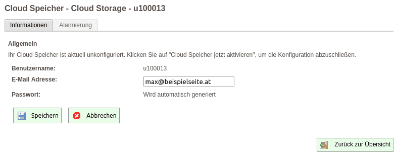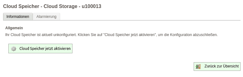 Klicken Sie danach auf „Details“ neben dem unkonfigurierten Cloud Speicher. Sie werden nun aufgefordert Ihren Cloud Speicher zu aktivieren:
