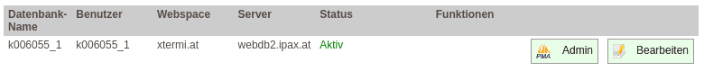 Um eine bestehende Datenbank zu bearbeiten, klicken Sie in der jeweiligen Zeile der Datenbank Übersichtstabelle auf den Button „Bearbeiten“.