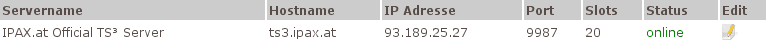 Zur Bearbeitung eines TeamSpeak 3 Servers klicken Sie auf den Bild-Link in der Edit-Spalte der TeamSpeak 3 Server Übersicht.
