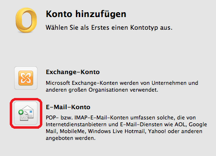 Klicken Sie bitte auf den Button „E-Mail-Konto“.