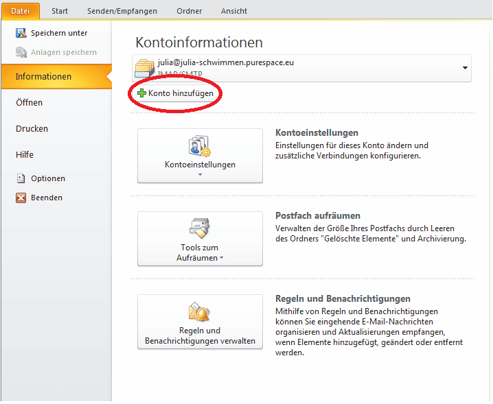 Konfiguration eines E-Mail Kontos in Outlook 2010 #