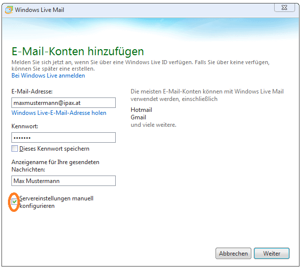 Konfiguration eines E-Mail Kontos in Windows Live Mail 2011 #