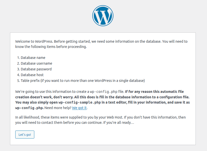 - Klicken Sie anschließend im Browser auf Let’s go!